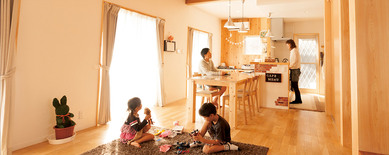 一生に一度かもしれない家づくりだからこそ、ありきたりのカタログを広げ「この中から選んでください」といった家づくりではなく、家族のライフスタイルや好みに合った家づくりをご提案いたします。自然素材を使った家は“ 環境にも身体にもやさしくて、居心地のいい家 ”です。